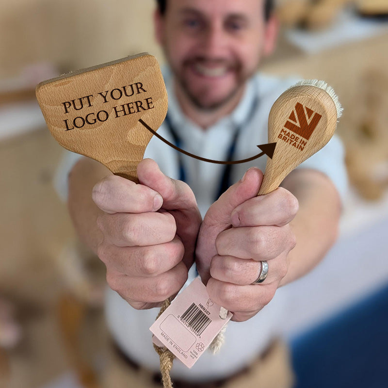At Natural by Hillbrush, we specialise in crafting premium wooden cleaning brushes and grooming tools using FSC® certified beechwood and responsibly sourced natural fibres. Now, you can put your own stamp on them — with laser engraving, branded packaging, or personalised designs.