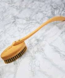 Crafted in Britain using FSC® certified beechwood and light natural bristles, this brush offers a soothing exfoliation that helps to boost circulation, encourage skin renewal, and leave your body feeling refreshed and nourished. The extended handle provides easy reach across your back and lower legs, making it perfect for those who value comfort, accessibility, and grace in motion.