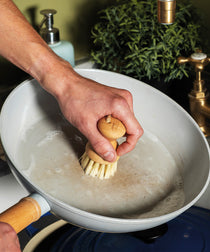 Thoughtfully crafted in Britain using FSC® certified beechwood and durable, plant-based tampico fibres, the Natural Pot Brush combines traditional brush-making expertise with modern eco-conscious design. Its compact round handle sits comfortably in the palm of your hand, allowing for firm pressure and easy control — ideal for scouring pots, pans, and dishes without damaging surfaces.